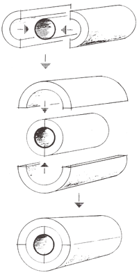 | Nøjagtigt udskårne i to halvdele og af flere lag